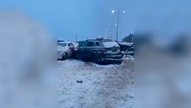 Опубликованы кадры с места столкновения свыше 40 машин под Тулой