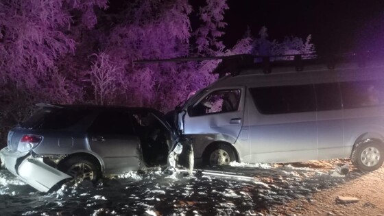 Второе ДТП произошло около 18:00 на 150-м км федеральной автодороги "Вилюй". По предварительным данным, водитель автомобиля "Субару Импреза" выехал на встречную полосу движения и совершил лобовое столкновение с микроавтобусом "Тойота Хайс". "В результате ДТП пострадали пять пассажиров микроавтобуса и четыре пассажира легкового автомобиля, среди них четверо несовершеннолетних. Все пострадавшие с различными травмами доставлены в медицинское учреждение", - добавили в полиции.