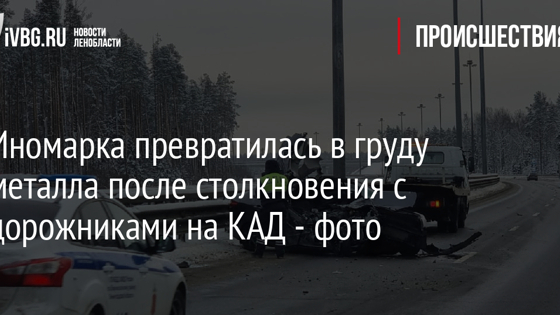 Иномарка превратилась в груду металла после столкновения с дорожниками на КАД - фото