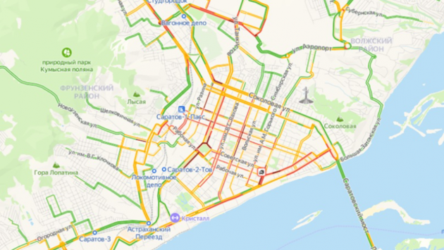 Наиболее напряженная ситуация сейчас наблюдается вцентральной части Саратова, врайоне Детского парка, атакже навъездах вЛенинский район состороны проспекта 50 лет Октября, Соколовой иНавашина.