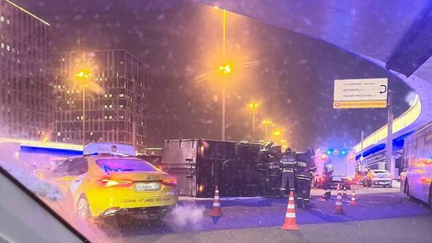 Грузовик перевернулся между станциями Московского метрополитена «Динамо» и «Белорусская». Об этом «Вечерней Москве» сообщили очевидцы.