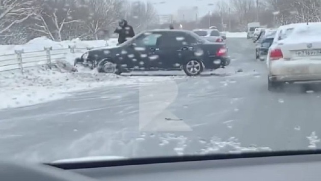 Легковушка получила заметные повреждения, у неё помят капот, разбит бампер. По словам очевидцев, рядом с пострадавшей машиной стоял ещё один автомобиль с аварийными сигналами — не исключено, что он тоже пострадал в ДТП.