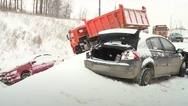 Последствия аварии 19 машин под Липецком попали на видео
