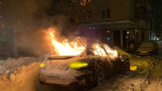 Ночью в центре Уфы сгорел автомобиль «Порше Панамера»