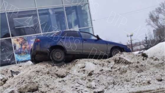 В Анжеро-Судженске произошло ДТП, в результате которого легковой автомобиль оказался в сугробе.