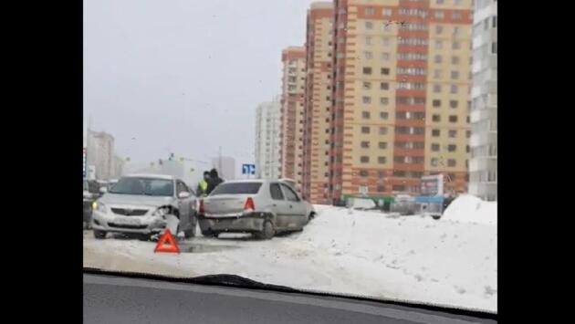 ДТП произошло у заправки «Газпром». На кадрах видно, что «француз» заехал передними колёсами прямо в сугроб. На второй искорёжен бампер и разбита фара. Очевидец сообщил, что образовалась пробка со стороны Дядькова.
