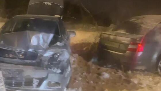 Авария произошла у посёлка Калининское, примерно в 19.10. Судя по кадрам, столкнулись несколько легковушек. Автомобили сильно повреждены. Автор ролика отметил, что пострадавших нет.