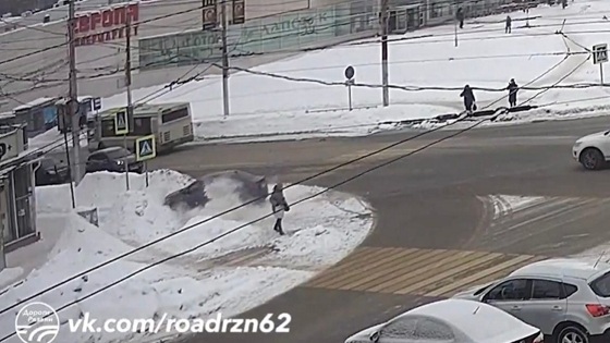 Происшествие произошло в среду, 26 января, около магазина «Европа». На кадрах видно, что иномарка ехала с большой скоростью и на перекрёстке не успела затормозить, в результате въехала в сугроб.