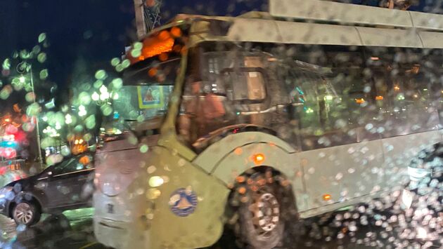На площади Победы образовалась пробка из-за ДТП с троллейбусом