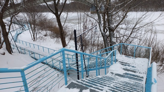 Выглядит не слишком надёжным и удобным для ходьбы. Понятно, что тут исходили из уже существующих препятствий (дороги, мост), но так обидно всегда — машинам короткий путь поверху, а людям длинный и неудобный маршрут в обход или под землёй, — сетует Людмила Куликова.