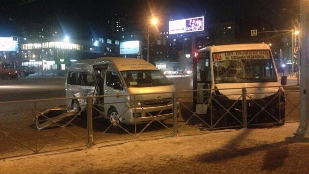 Массовая авария с участием маршрутки № 45 на пересечении проспекта Димитрова и Вокзальной магистрали произошла вечером накануне, 31 января. В ней пострадали пять женщин.