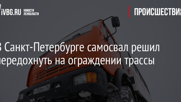 В Санкт-Петербурге самосвал решил передохнуть на ограждении трассы