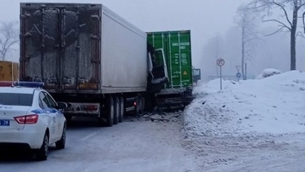Новый день - новое ДТП: на обледенелом Московском шоссе в Петербурге столкнулись две фуры