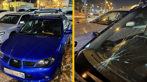 Неизвестные разбили лобовое стекло Subaru основателя паблика «АСТ-54» Виталия Полищука. Повреждение он увидел, когда вышел к своей машине, припаркованной напротив полка ГИБДД на улице Станционной, 24/1.