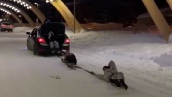 Молодая жительница Сургута, Югра, передвигалась на автомобиле, при этом трое пассажиров сидели не капоте, еще трое волочились по земле, держась за трос. Кадры с инцидентом появились в Сети.