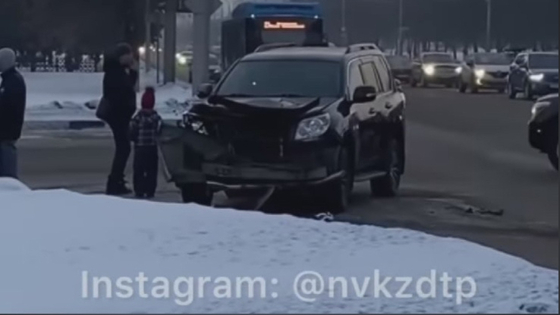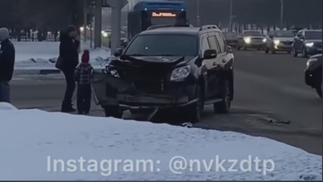 В Новокузнецке на перекрестке столкнулись легковой автомобиль и джип. Легковушка получила сильные повреждения.
