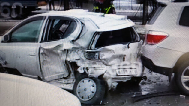 Запись оказалась в распоряжении телеканала «360». На ней видно белый автомобиль, который сильно пострадал в аварии. Обломки машины раскиданы вокруг.