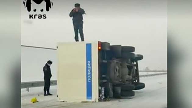 Появилось видео с перевернувшимся автозаком с 14 арестантами под Красноярском