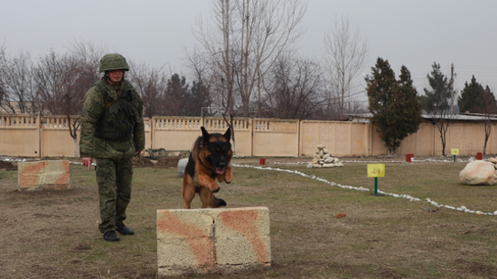 Разминирование горных серпантинов с помощью служебных собак выполнили саперы на учении Таджикистане