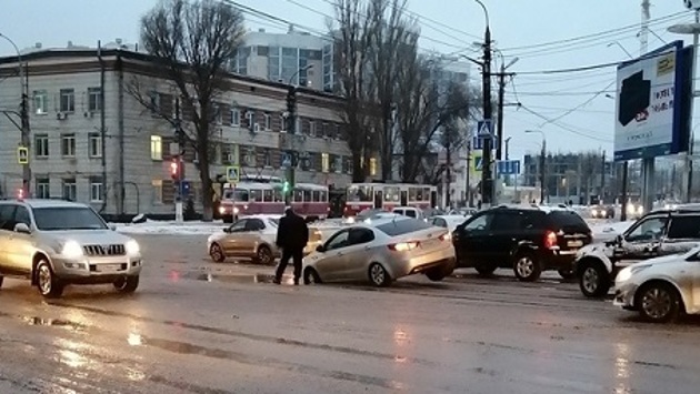 В центре Волгограда иномарка застряла в скрытой под водой яме