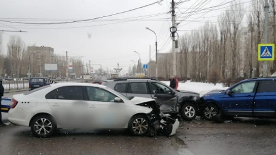 По информации воронежского ГУ МВД, около 11.30 39-летний горожанин на Skoda Rapid протаранил автомобиль Nissan Terrano, которым управляла 38-летняя жительница областного центра. От удара Nissan отлетел на Volkswagen Tiguan, управляемый 37-летней жительницей Воронежа.