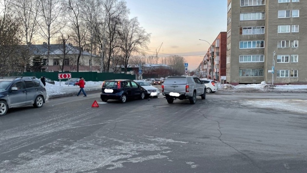 В кузбасской столице не поделили улицу две легковушки и пассажирский автобус. Одна из машин получила критический урон.
