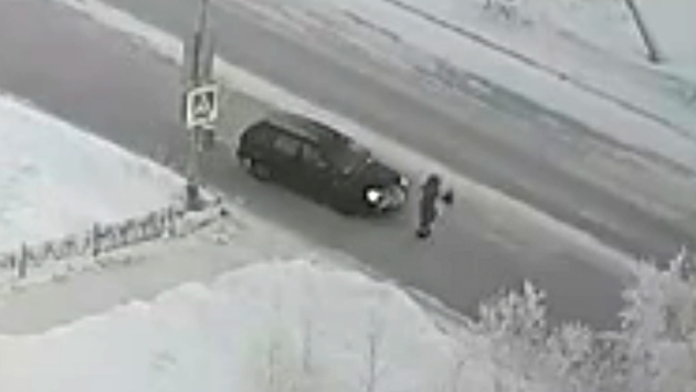 В Новом Уренгое иномарка на переходе сбила женщину. ВИДЕО