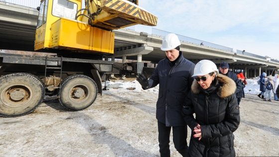 Мэр Челябинска посмотрела, как строится главный мост города