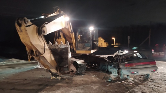 Водитель родился в рубашке: в Челябинске экскаватор смял легковой автомобиль