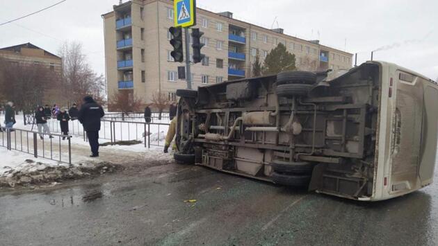 "На перекрестке улиц Северной и Комсомольской в 15:04 73-летний водитель автомобиля УАЗ, двигаясь по второстепенной дороге, не пропустил рейсовый автобус ГАЗ, в котором ехали 10 пассажиров, от удара автобус опрокинулся на бок. Пятеро пассажиров автобуса, в том числе двое детей, девочки 12 и 16 лет, доставлены в больницу для установления диагноза и оказания медицинской помощи. Также травмирован водитель УАЗа", - говорится в сообщении.
