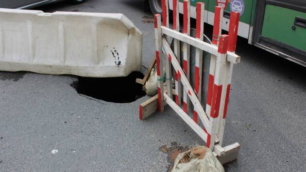 По словам очевидца, на этот раз в отверстие провалились сразу два транспортных средства: микроавтобус и легковой автомобиль. Информация о пострадавших не поступала.