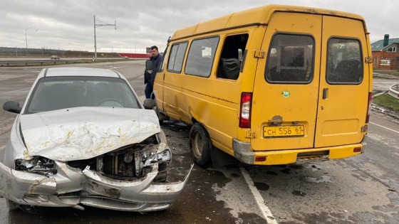 Ростовская область, 4 марта 2022. DON24.RU. ДТП с участием пассажирского транспорта произошло сегодня утром на 15-м км автодороги Ростов – Азов. Есть пострадавшие. Подробности аварии сообщили в региональном УГИБДД. По предварительным данным, около 08:00 62-летний водитель пассажирской ГАЗ-322132, следовавшей по маршруту Кулешовка – Азов, при повороте налево не уступил дорогу Hyundai Accent и врезался в него. В результате ДТП пострадали две женщины, ехавшие в маршрутке. Их госпитализировали с травмами. Обстоятельства инцидента в настоящее время устанавливаются.