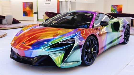 Производитель суперкаров McLaren попросил британскую художницу-абстракционистку Нэт Боуэн, знаменитую яркими полотнами, использовать в качестве холста суперкар Artura. Результатом стал арт-объект, покрытый несколькими слоями разноцветных красок. Рассмотреть еще не выпущенный Artura в разноцветном облачении могут все желающие в дубайском отеле ME Dubai: автомобиль выставлен там с 24 февраля по 31 марта.