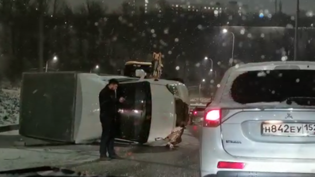 Автомобиль ГАЗель перевернулся на Окском съезде в Нижнем Новгороде вечером 13 марта, сообщили ИА «Время Н» очевидцы происшествия.