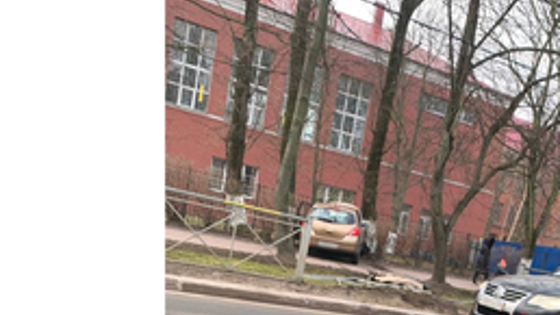 В Калининграде на Фрунзе легковушка снесла дорожный забор и врезалась в школьный