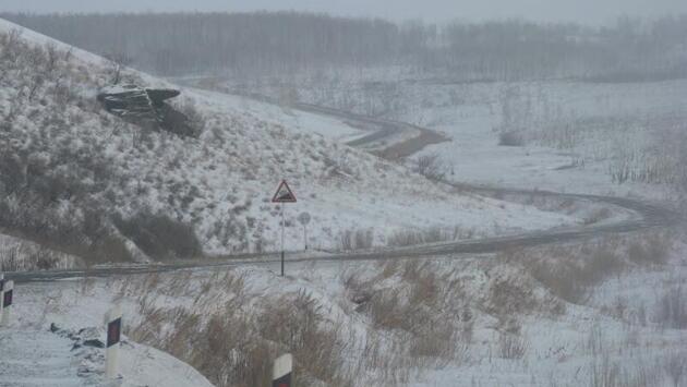 В Забайкалье из-за снега КАМАЗ с прицепом слетел с трассы