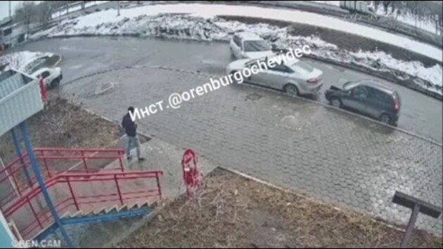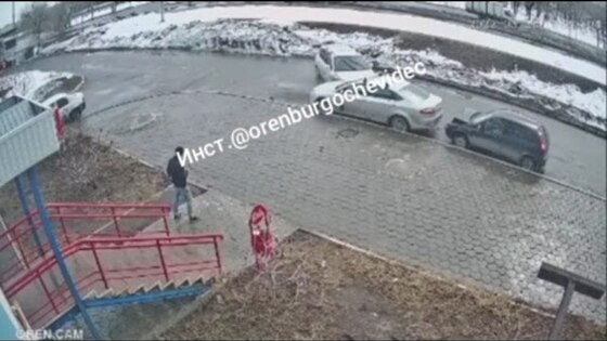 Происшествие попало на камеру наблюдения. Совершивший ДТП водитель через некоторое время продолжил движение, скрывшись с места преступления.