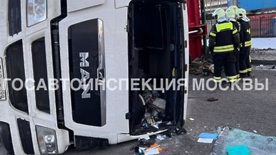 Грузовик с асфальтовой крошкой перевернулся на западе Москвы