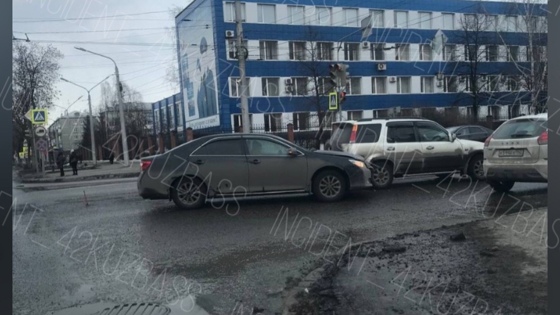 В Новокузнецке посреди перекрестка столкнулись два легковых автомобиля. В результате они заблокировали часть дороги.