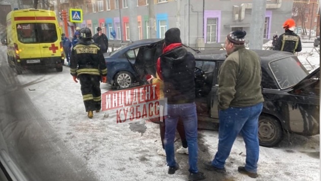 ВАЗ протаранил такси на пересечении Шахтеров и Соснового бульвара в Кемерове в воскресенье, 3 апреля, около 9:00.