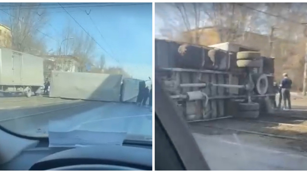 В Октябрьском районе Новосибирска авария привела к перебою в работе общественного транспорта. Инцидент произошел 6 апреля на улице Гурьевская, где опрокинувшаяся фура перекрыла трамвайные пути.
