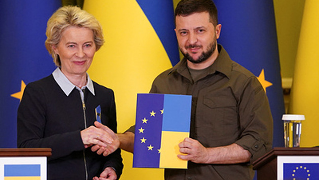 Глава Еврокомиссии (ЕК) Урсула фон дер Ляйен передала президенту Украины Владимиру Зеленскому опросник, заполнение которого позволит ЕК рекомендовать начать переговоры о вступлении Украины в ЕС. "Вопросник должен быть заполнен, это вопросы для [вынесения] формальной позиции в качестве рекомендации Европейскому союзу. Мы готовы 24 часа семь дней в неделю помочь вам заполнить этот вопросник. Поэтому сформулировать эту позицию можно будет не как обычно в течение лет, а в течение недель, если мы будем тесно работать вместе", – главу Еврокомиссии газета "Взгляд".