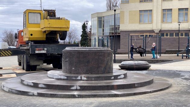 В Саратове на набережной началась установка постамента под памятник Петру I
