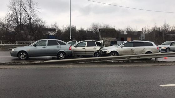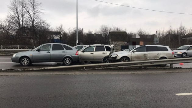Из Москвы в сторону Белгорода направлялся 40-летний водитель автомобиля Фольксваген Пассат. Он врезался в остановившийся на красный сигнал светофора автомобиль Лада Калина, за рулем которого был 21-летний парень. Калина врезалась в стоящую впереди Приору, а также в Рено Меган, который стоял в среднем ряду. В результате пострадали три пассажира автомобиля Лада Калина: два 20-летних парня и один подросток 16 лет. Полиция выясняет причины и обстоятельства ДТП.