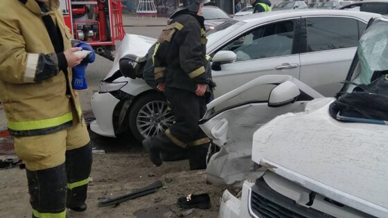 Предварительно сотрудники ГИБДД установили, что 30-летний водитель автомобиля «Тойота» не выдержал безопасную дистанцию и врезался в автомобиль «Киа», которые ехал впереди. От удара «Киа» столкнулась с «Шевроле». Три человека — двое мужчин и одна женщина — госпитализированы.