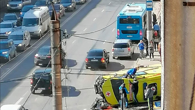 По информации издания, от удара автомобиль скорой вылетел на остановку общественного транспорта и сбил ждущих автобус горожан.