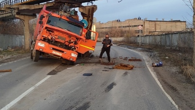 Соцсети: грузовик застрял под мостом в Дзержинске