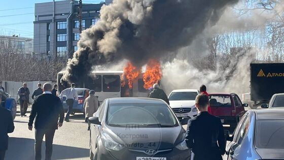 Пазик с пассажирами загорелся посреди дороги в Костроме