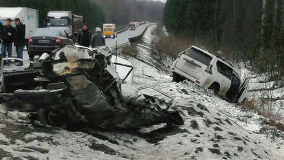 На трассе Зеленодольск-Йошкар-Ола произошло смертельное ДТП, сообщает Telegram-канал "ВТатарстане поймут". Судя по фото, на скользкой дороге столкнулись автомобили ВАЗ-2114 и Toyota Land Cruiser Prado. После аварии отечественный автомобиль разорвало на две части. Японский внедорожник съехал на обочину в снег примерно в 50 метрах от "Лады". У него открыта водительская дверь. О том, что послужило причинами аварии не сообщается. Известно лишь об одном погибшем.