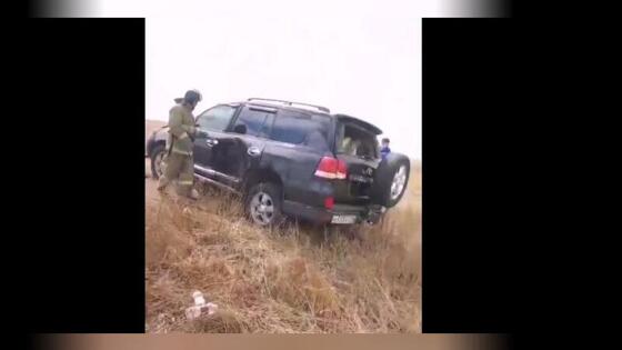 По словам очевидцев, водитель джипа Toyota Land Cruiser не смог справится с управлением, и машина на большой скорости вылетела на обочину, при этом водитель и пассажир выпали из салона. В результате ДТП они оба погибли.